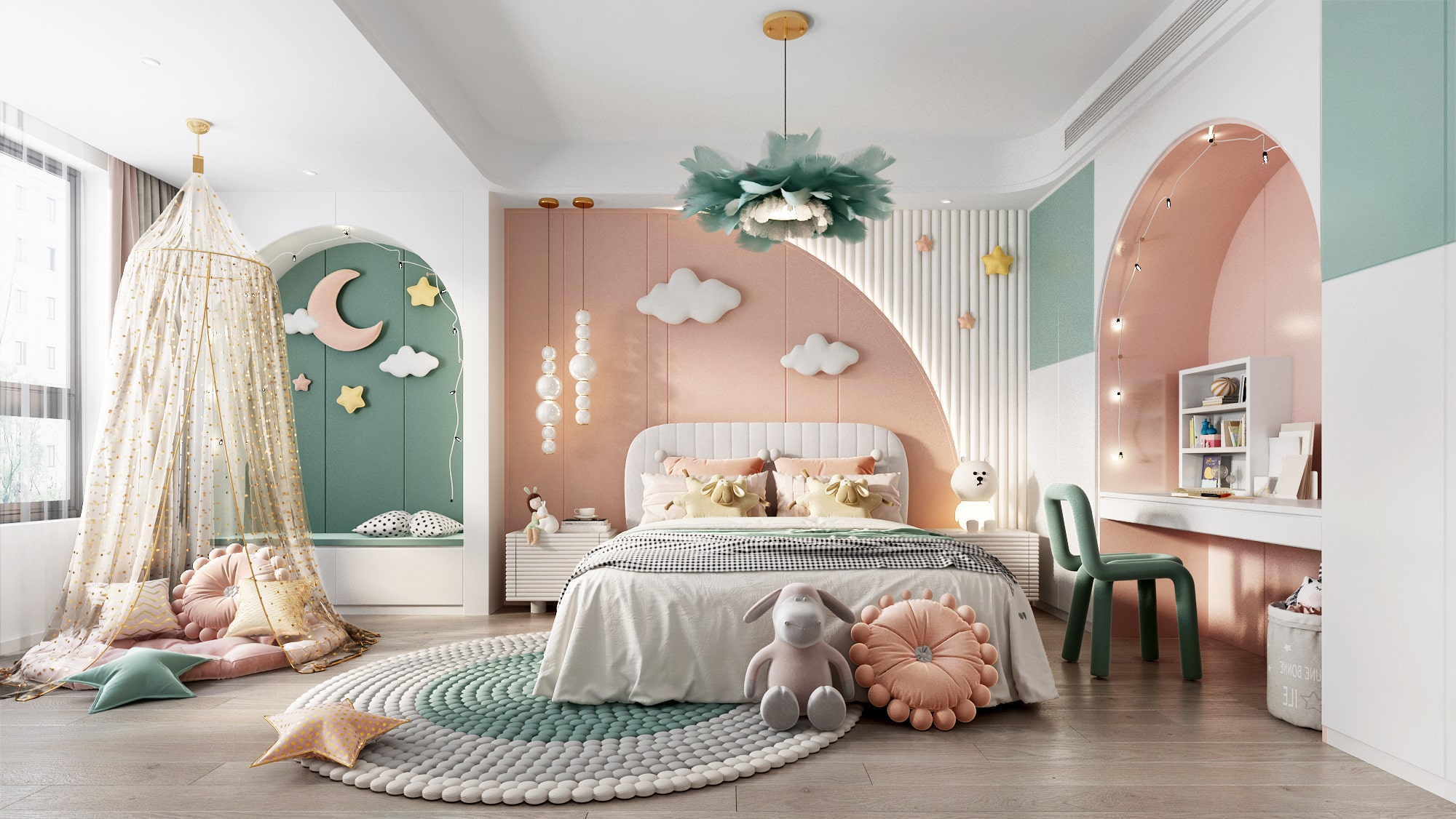 Bạn có thể sử dụng các thiết kế thông minh để tối ưu hóa không gian phòng ngủ. Ví dụ, bạn có thể sử dụng giường tầng, tủ âm tường, cửa sổ trượt... để tạo ra thêm không gian lưu trữ và vui chơi cho bé.