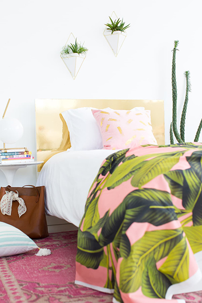 Một cách dễ dàng để tạo cho phòng ngủ có diện mạo mới là trang trí đầu giường bằng cách dán đồng hoặc giấy nhằm tránh đầu giường bị trầy xước hoặc hư hỏng nhẹ đồng thời chiếc giường sẽ trở nên xinh và hấp dẫn hơn.