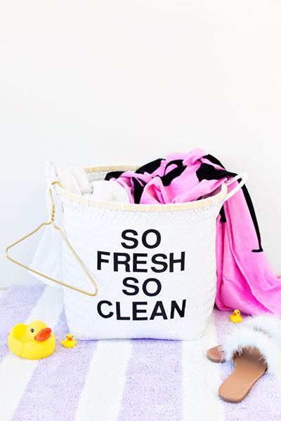 Nếu bạn độc thân và ghét giặt đồ thì hãy tăng sự thú vị bằng cách tô thêm sắc màu yêu thích cho giỏ giặt vải dệt hay cỏ mây để đựng đồ riêng của mình; dán những nhãn truyền thông điệp cho bản thân.