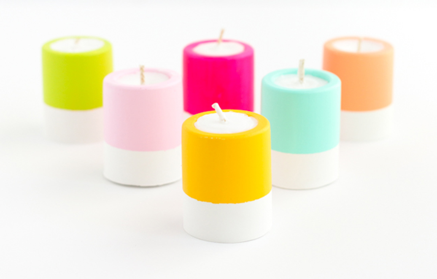 Thêm sắc màu bằng cách dùng thạch cao trong khuôn thủy tinh, sơn màu sáng và đổ sáp nến, bấc. Khi làm xong nến thạch cao, có thể sử dụng để trang trí bàn ăn.