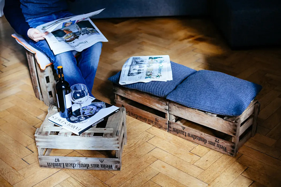 Tái chế cũng là một ý tưởng hay bạn nên nghĩ tới. Những tấm gỗ pallet thay vì vứt đi, bạn có thể biến chúng thành một bộ bàn ghế đậm chất vintage và thêm nét mộc mạc để tận dụng ngoài hiên cho những bữa ăn ngoài trời.
