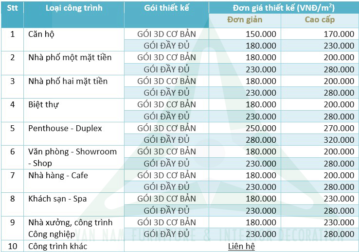 - Đối với các loại công trình đặc biệt xin vui lòng liên hệ với vannam.com.vn để có đơn giá chính xác và hợp lý;