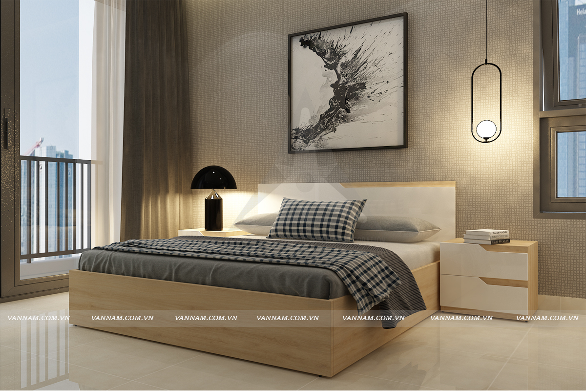 Giường phòng ngủ đơn giản, hiện đại, trẻ trung là sự lựa chọn hợp lý cho phòng ngủ với sắc màu trang nhã.