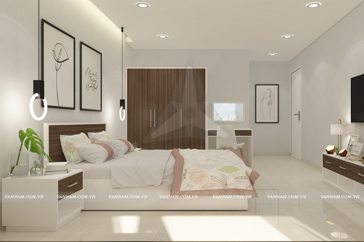Giường phòng ngủ đơn giản, hiện đại, trẻ trung là sự lựa chọn hợp lý cho phòng ngủ với sắc màu trang nhã.
