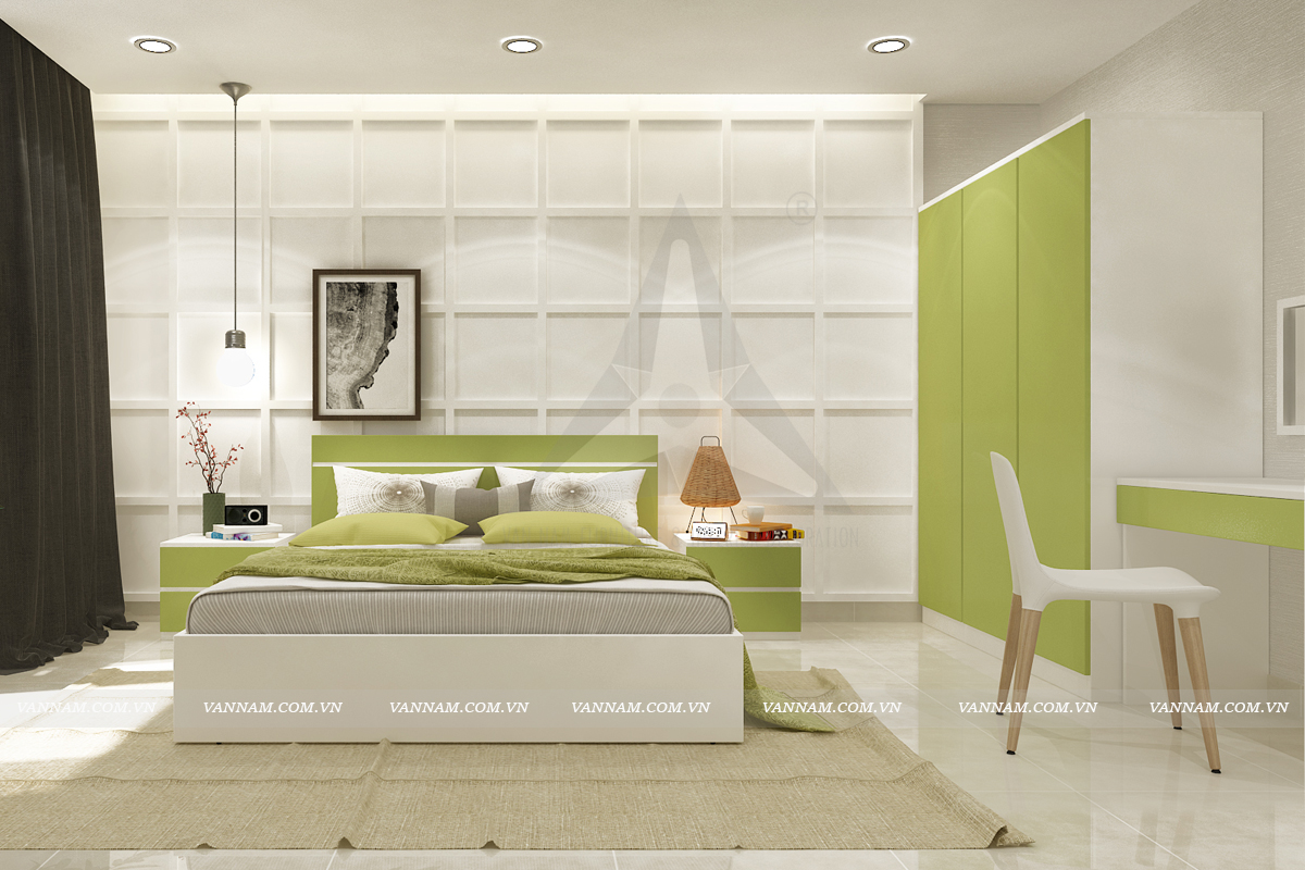 Giường phòng ngủ đơn giản, hiện đại, trẻ trung là sự lựa chọn hợp lý cho phòng ngủ với sắc màu trang nhã.