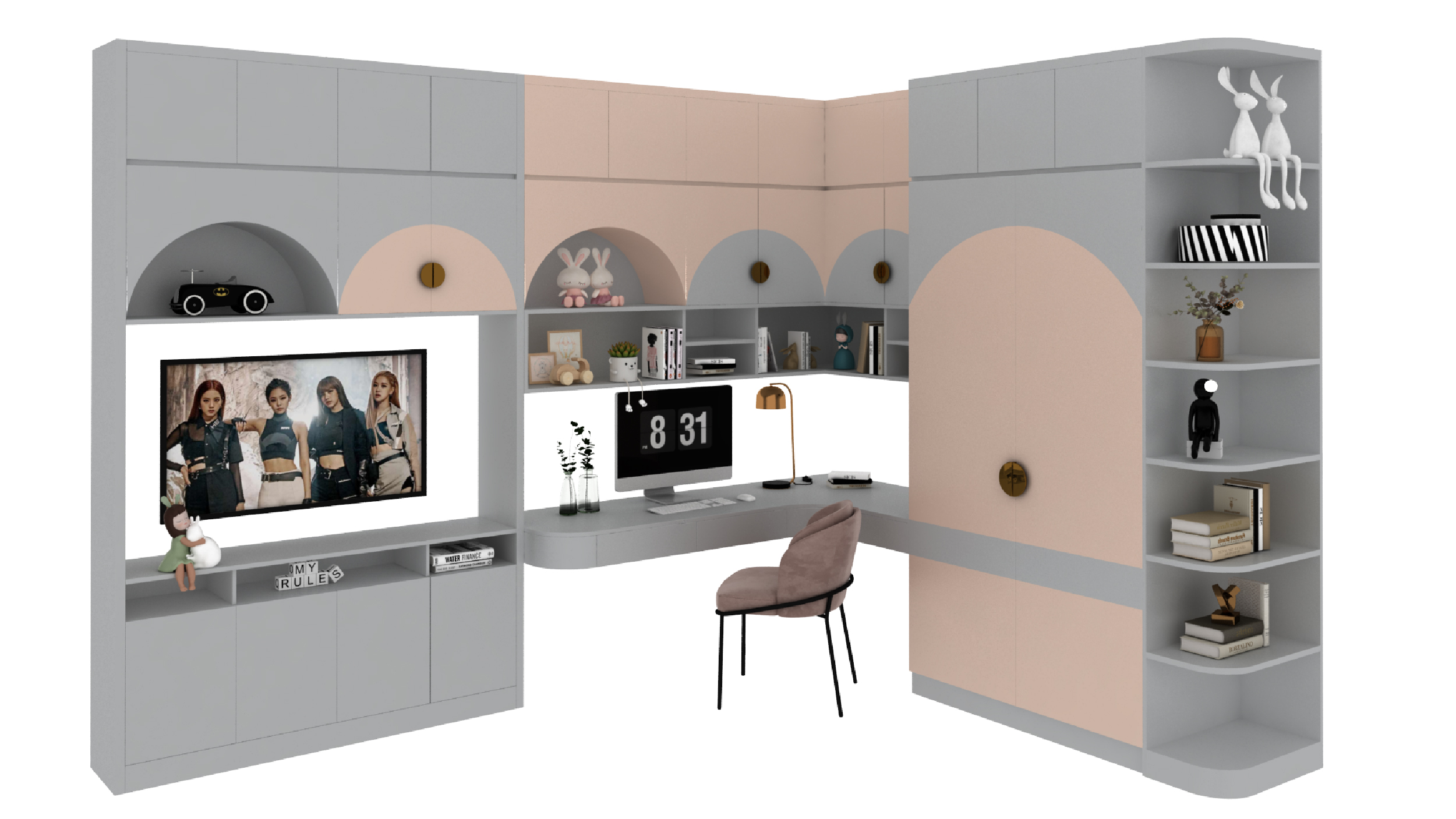 Hệ tủ kết hợp bàn học và làm việc.