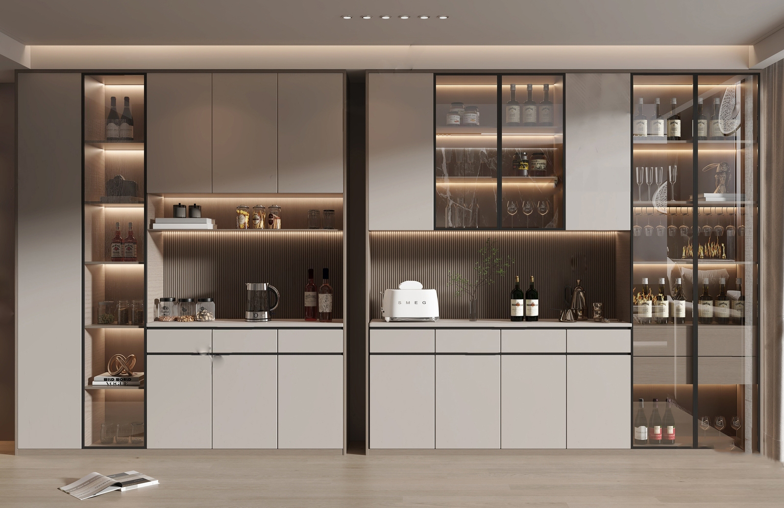 Tủ rượu hiện đại thường được làm từ các chất liệu như gỗ công nghiệp, gỗ tự nhiên, kính,… với nhiều màu sắc, kiểu dáng đa dạng cho bạn lựa chọn.