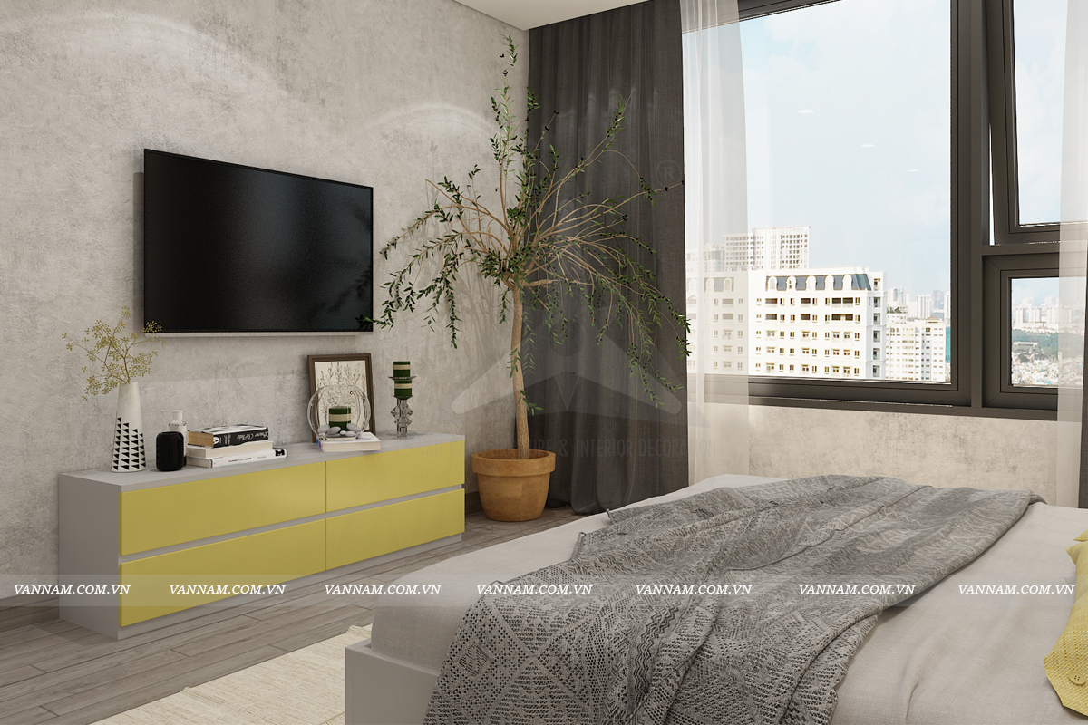 Phòng ngủ vintage với hai gam màu ghi vàng mang đến không gian sống ấm áp và rất mộc.