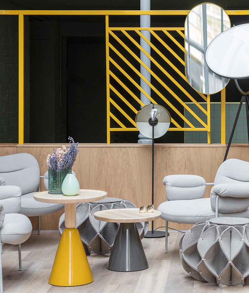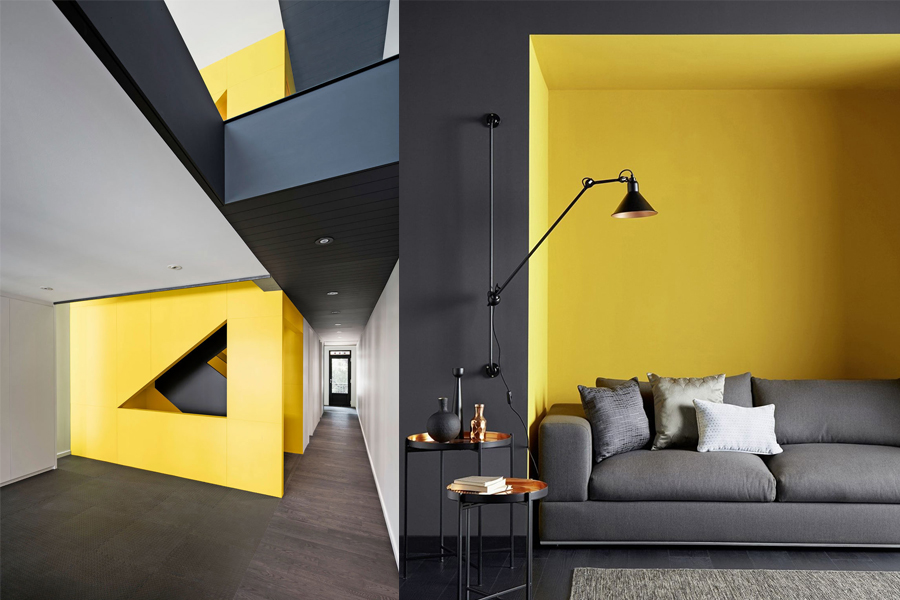 Trước khi bước vào cuộc chơi với tông màu này bạn cần tạo một thiết kế thật ấn tượng. Màu vàng sẽ kết hợp hoàn hảo cùng mày xám. Nếu bạn đang dùng thiết kế nội thất bê tông thì màu vàng hoàng yến là câu trả lời cho sự kết hợp này.