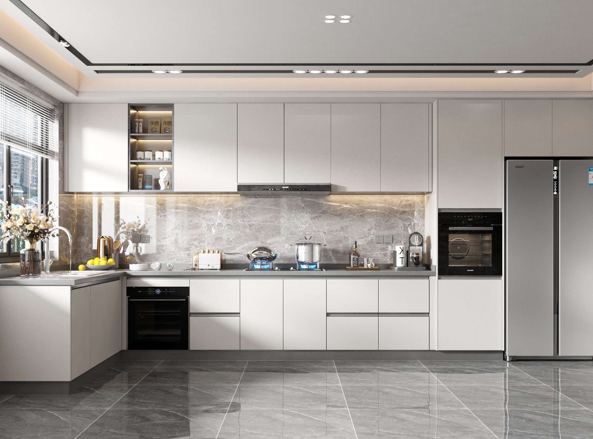 Kiểu dáng tủ bếp phổ biến nhất, phù hợp với nhiều không gian bếp khác nhau. Tủ bếp chữ L tận dụng tối đa diện tích góc bếp, mang lại sự gọn gàng và ngăn nắp.