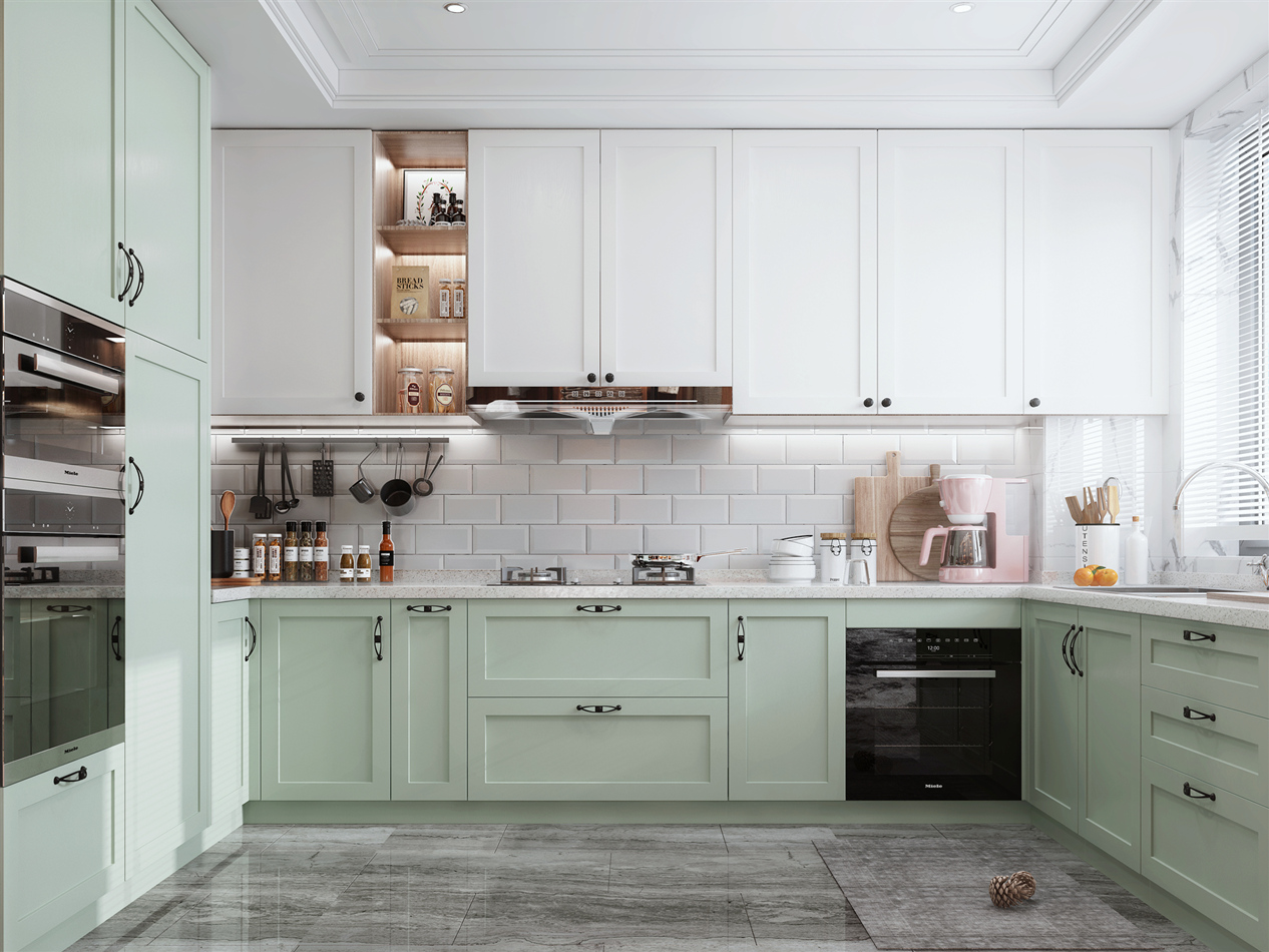 Tủ bếp hình chữ L rộng rãi, tiện nghi, được sử dụng nhiều.