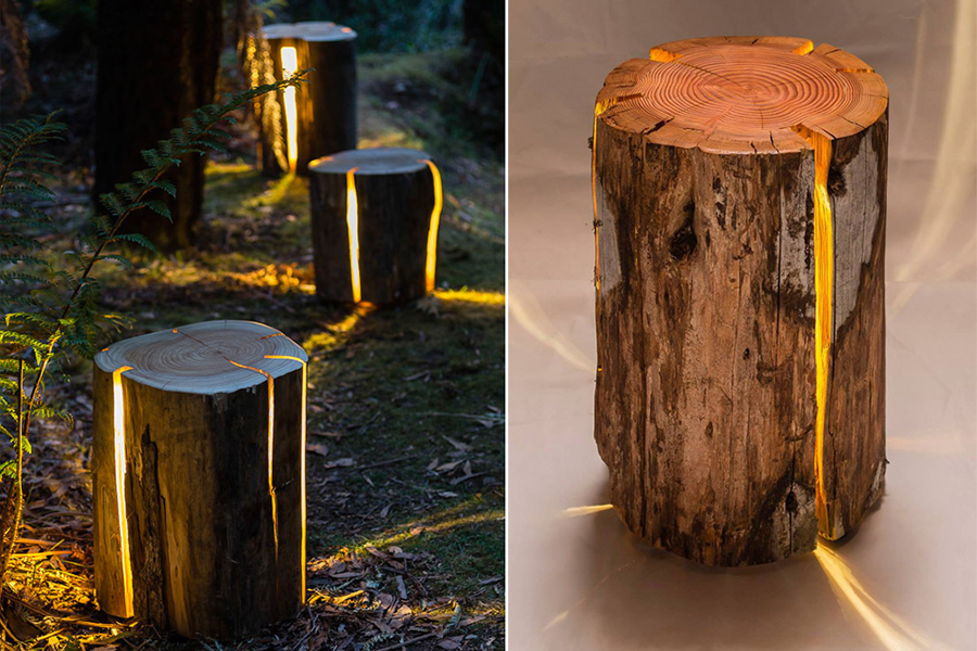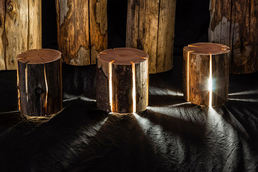 Những thân gỗ tưởng chừng trở thanh củi đốt có thể trở thành những sản phẩm tái chế lại độc đáo. Chúng được tôn lên, thay vì che đi những vết nứt tự nhiên trên thân gỗ như những sản phẩm gỗ khác bằng cách được biến hóa thành những chiếc hộp ánh sáng trang trí tạo mối liên hệ mật thiết vốn có với thiên nhiên.