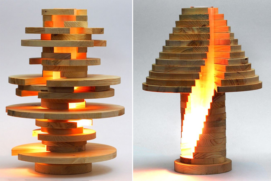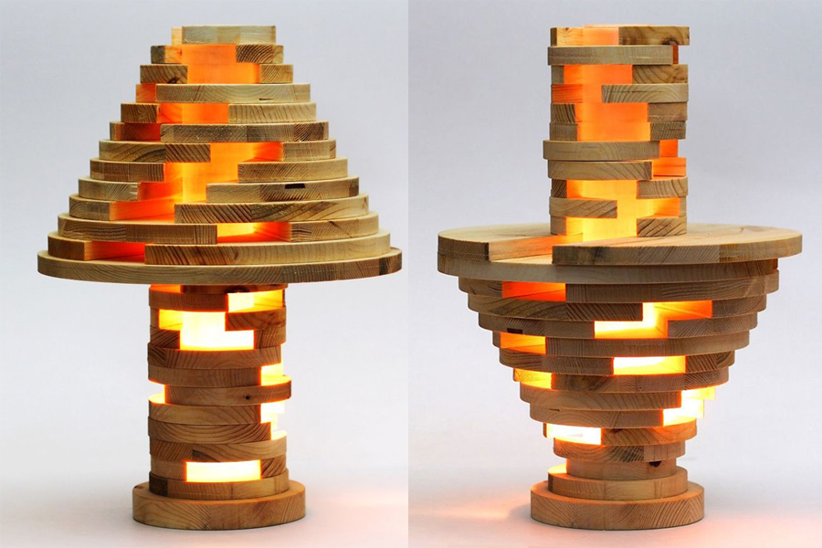Vẻ ngoài riêng biệt của mỗi khối gỗ khác nhau cho hiệu quả khác nhau tạo nên ý tưởng đèn độc đáo.